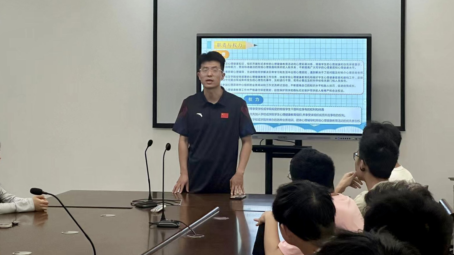为了进一步提升我院心理育人工作质量,我院于5月20日中午开展了“心有星辰,沐光而行”心理委员培训会,此次培训会由辅导员赵晨阳主讲,23级、22级各班心理委员及我院心理调研部全体成员参与培训。